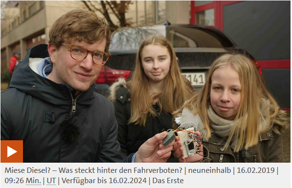 Die beiden Schülerinnen beschäftigen sich schon länger mit dem Thema Luftverschmutzung und haben gerade ein neues Stickoxid-Messgerät bekommen. Was sie damit messen werden? Außerdem besucht Robert ein Unternehmen, das die Abgase von Diesel-Fahrzeugen 'sauberer' machen möchte. Wie das funktioniert? Und wie sonst noch versucht wird, die Diesel-Abgase in unserer Luft zu verringern? Darum geht es in dieser Folge von neuneinhalb!
